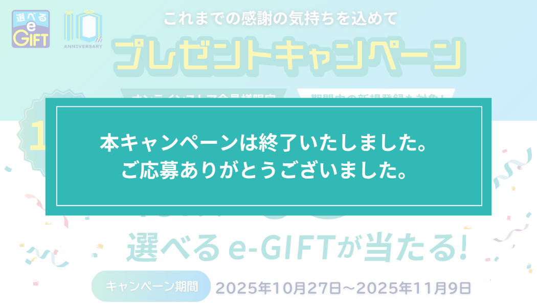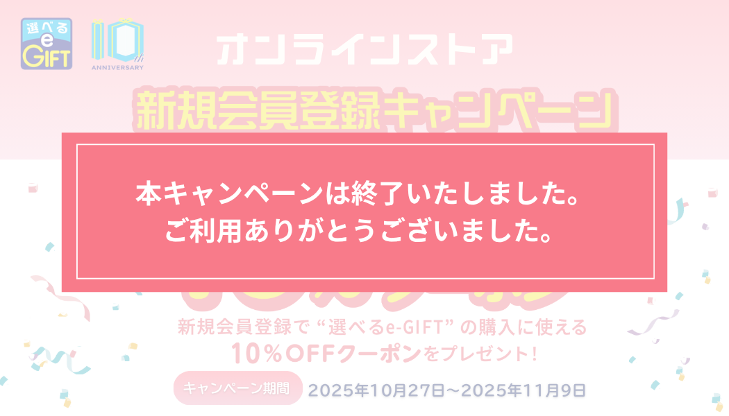 【選べるe-GIFT10周年キャンペーン2】新規会員登録キャンペーン