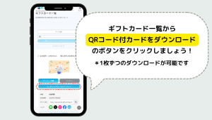 1. マイメニューのギフトカード一覧から「QRコード付カードをダウンロード」をクリック